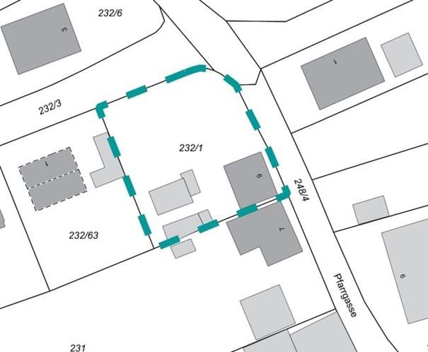 - Im Osten: durch die Gemeindestraße „Pfarrgasse“